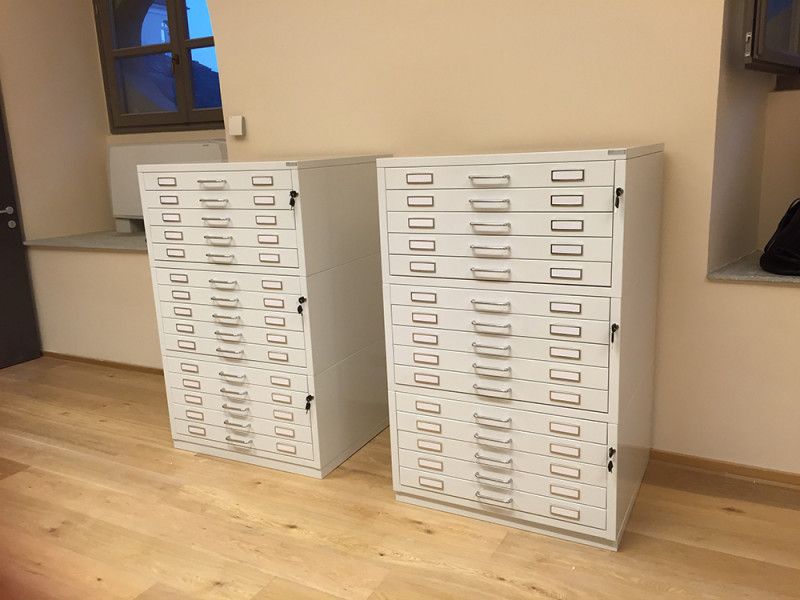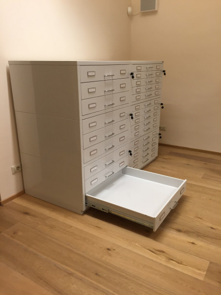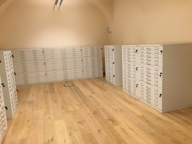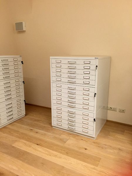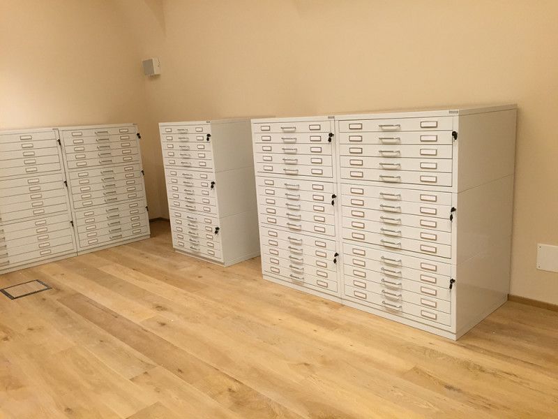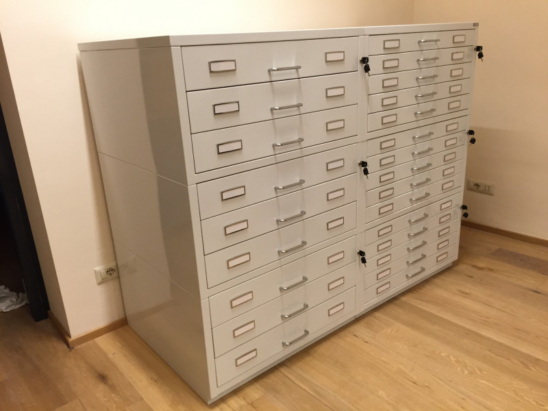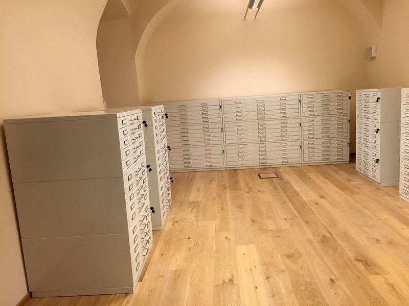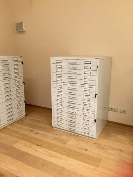 Cassettiere contenitive per reperti archeologici con guide telescopriche