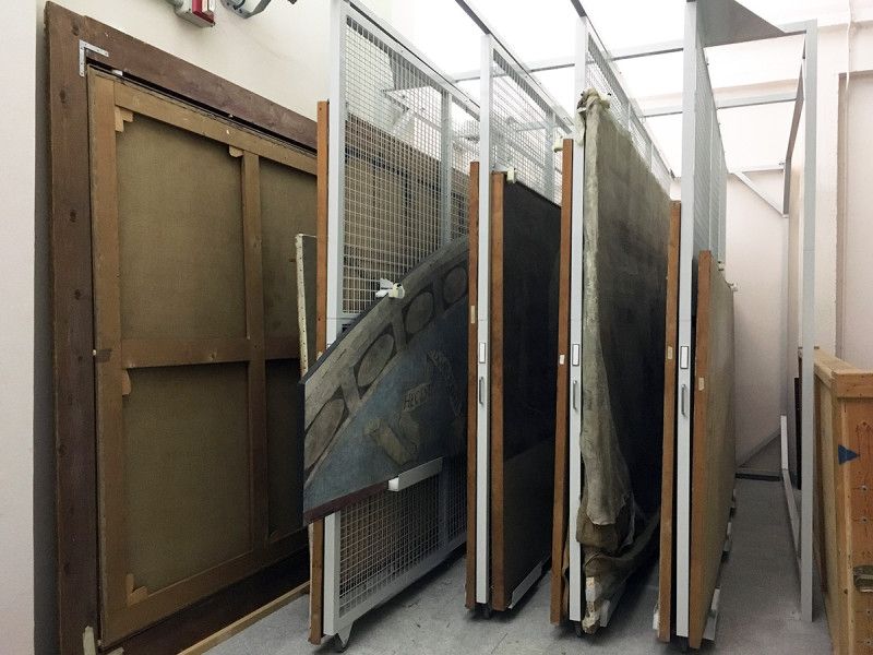 Rastrelliere porta quadri per pinacoteca - rastrelliere porta stampe archivio Bertarelli