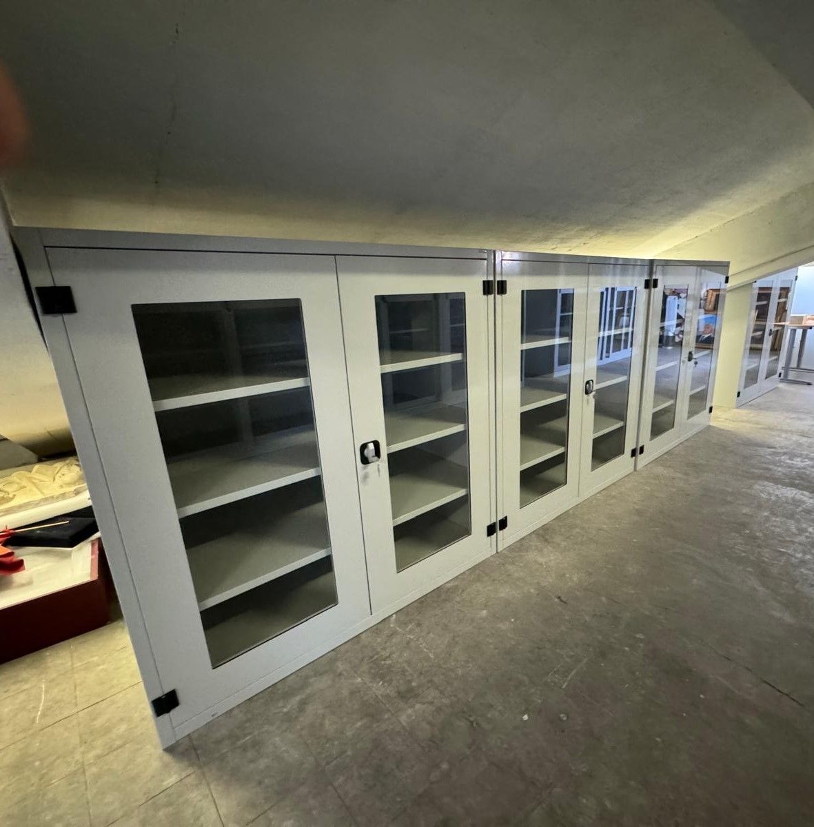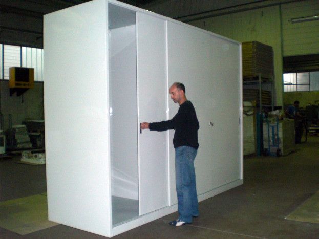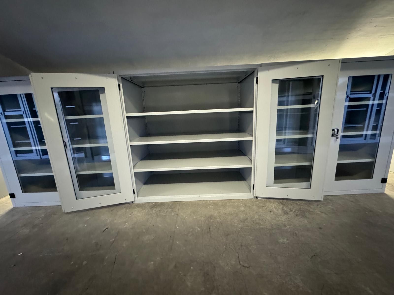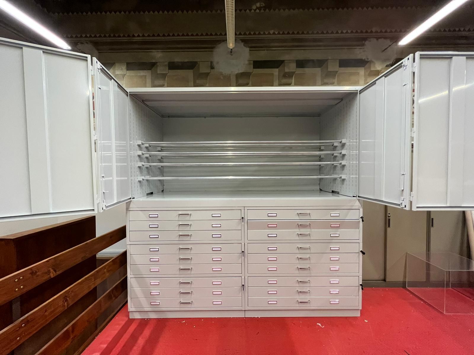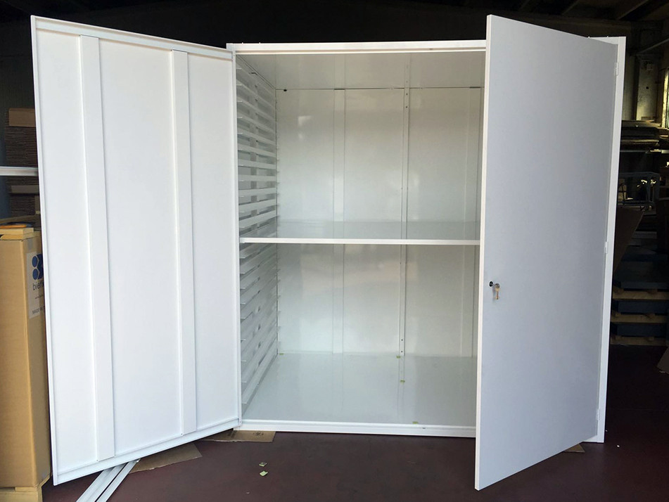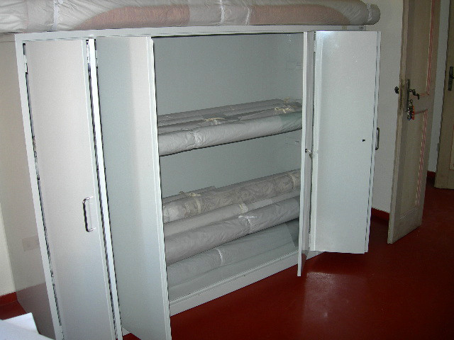 Armadi per erbari realizzati con ante con guarnizione e serratura a tenuta. Verniciatura a polveri epossidiche ignifughe certificate Classe 1 colori ral.