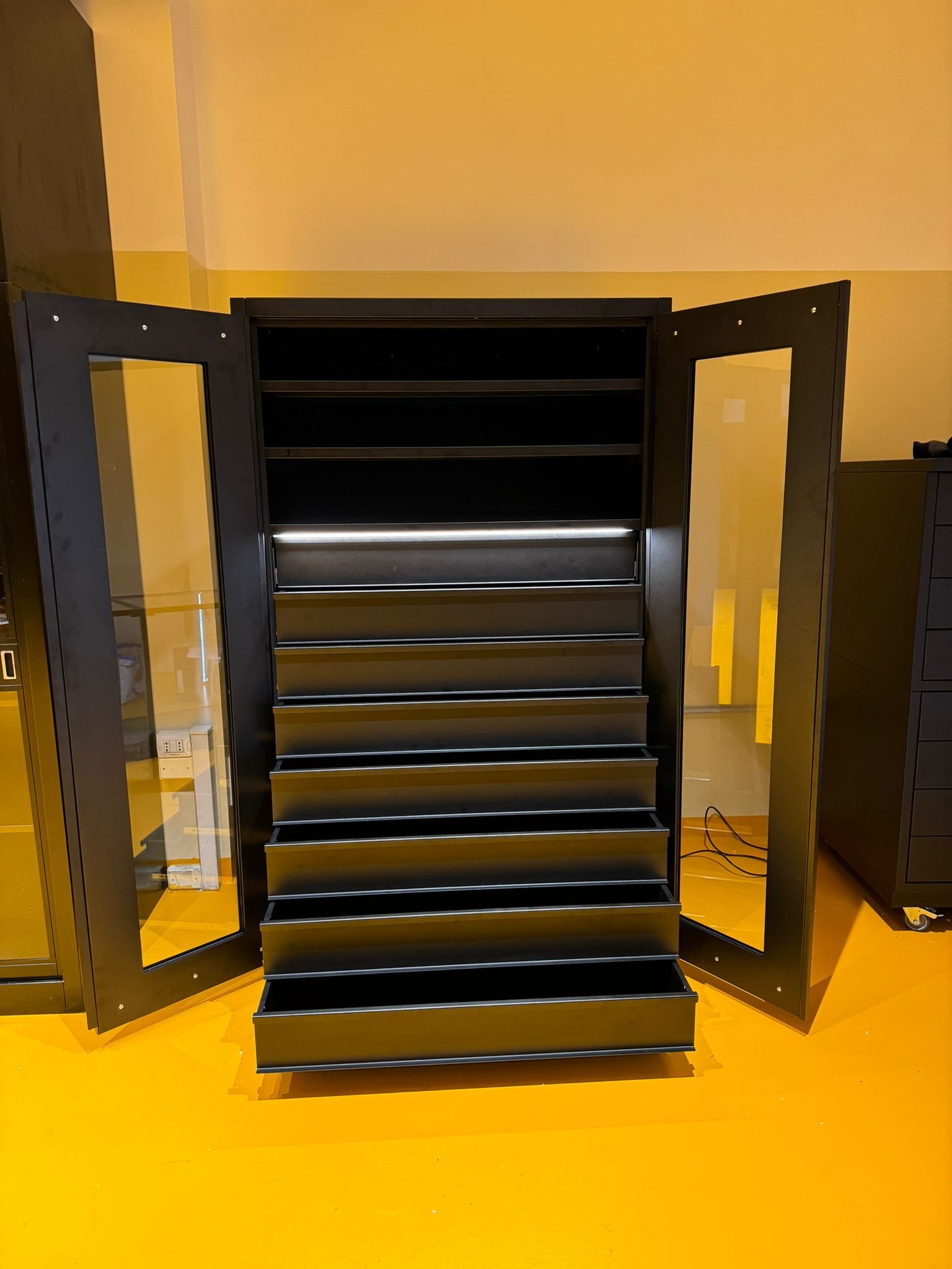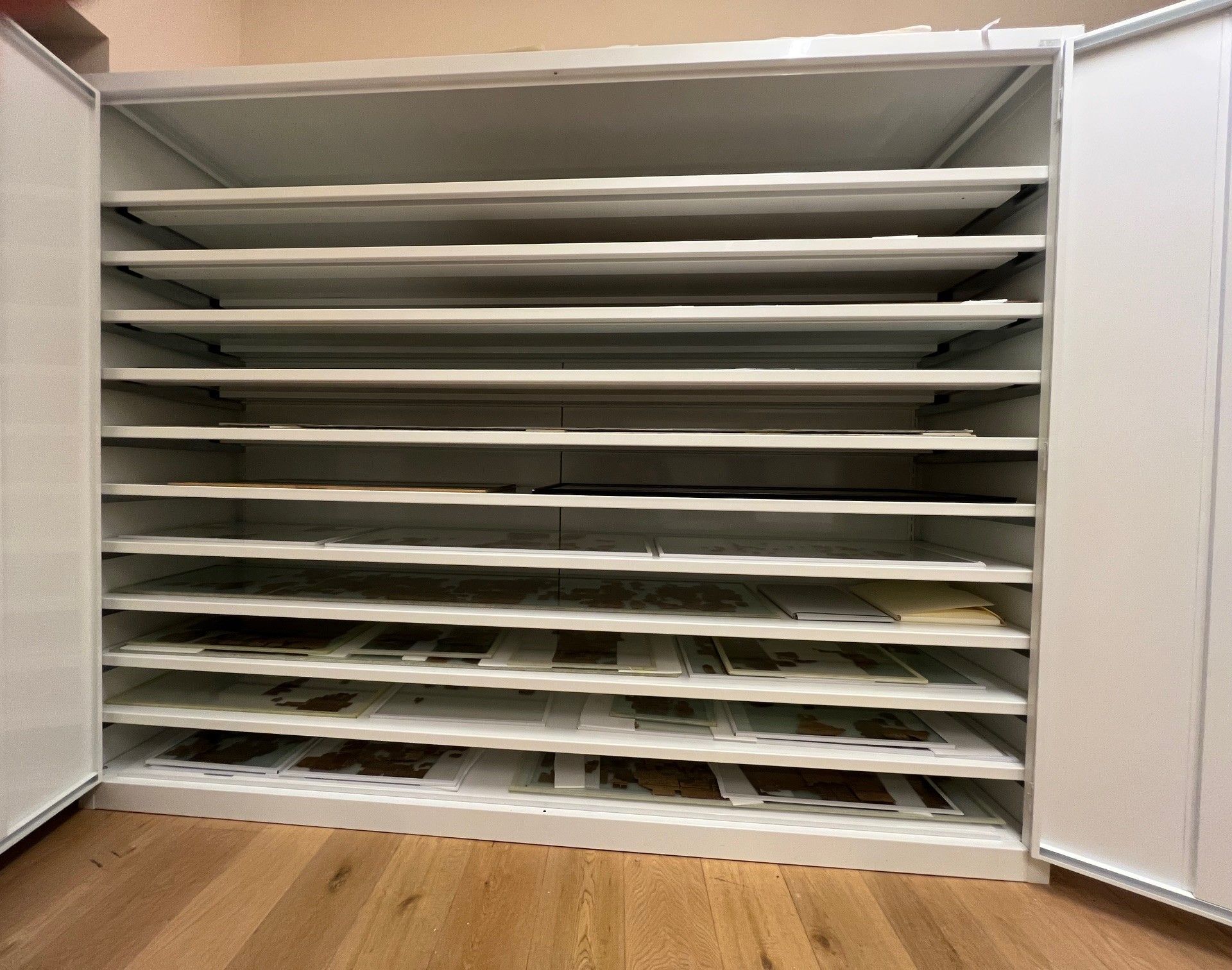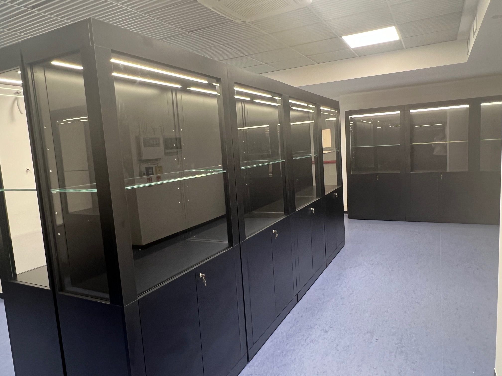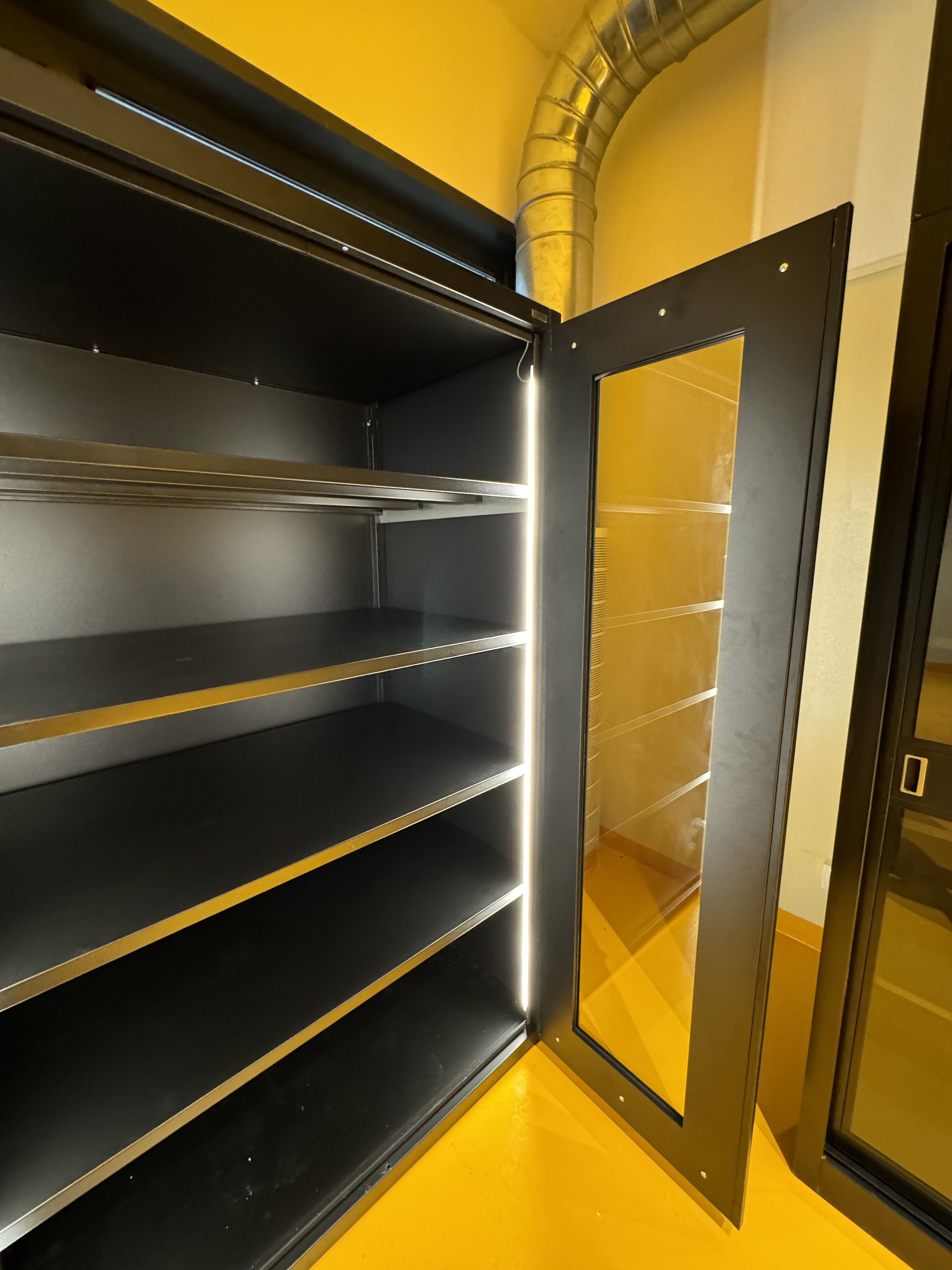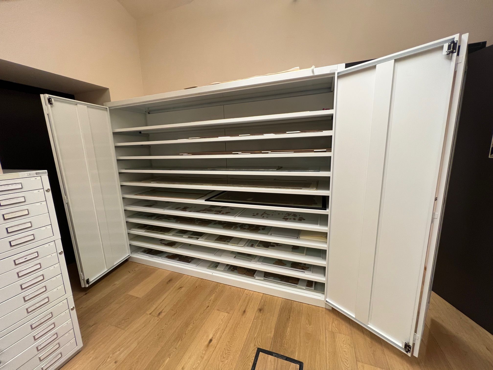 Armadi per erbari realizzati con ante con guarnizione e serratura a tenuta. Verniciatura a polveri epossidiche ignifughe certificate Classe 1 colori ral.