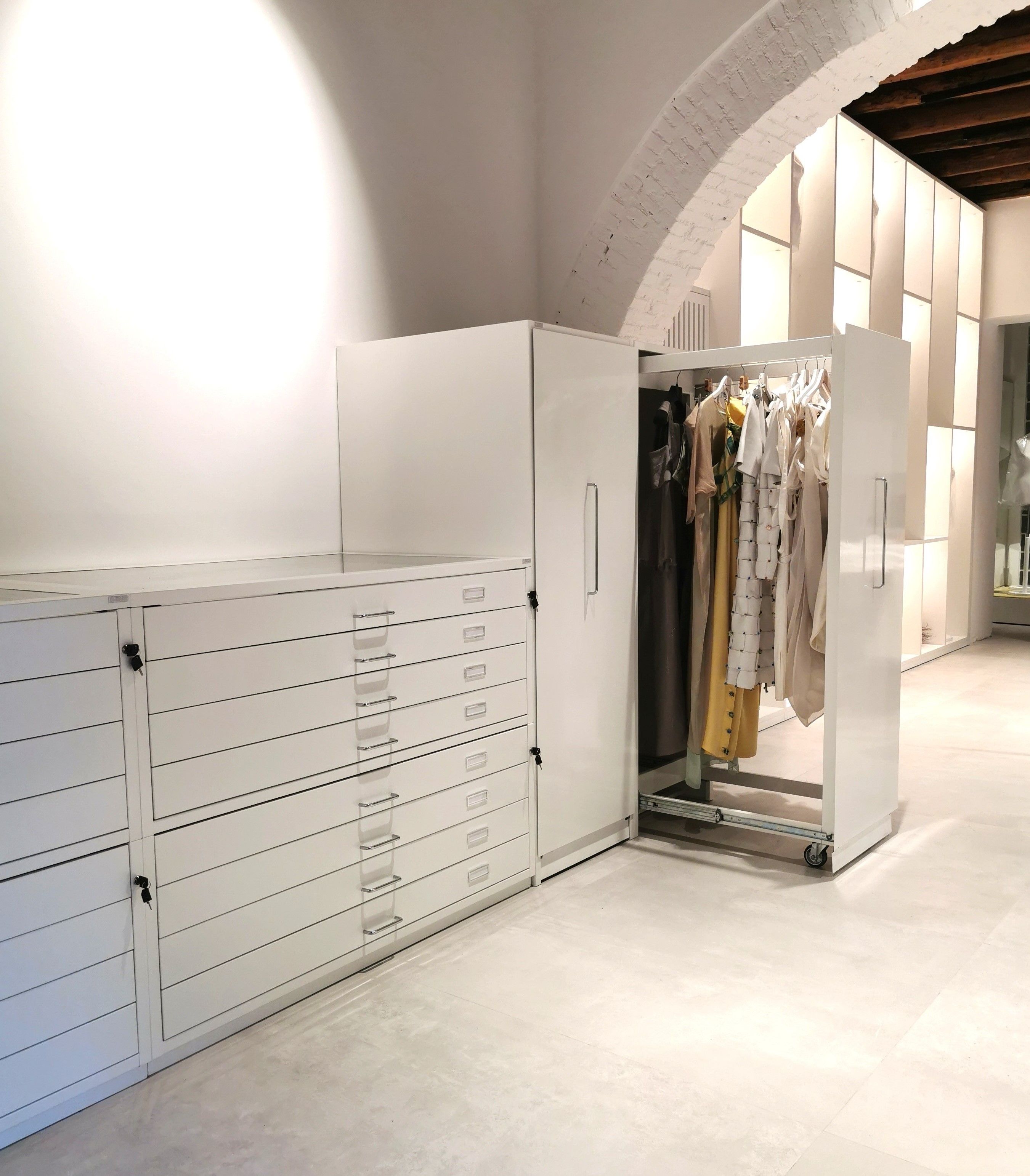 I mobiletti guardaroba per i musei possono avere le dimensioni di serie oppure possono essere realizzati con finiture particolari realizzate su disegno del committente o previa nostra progettazione a richiesta.