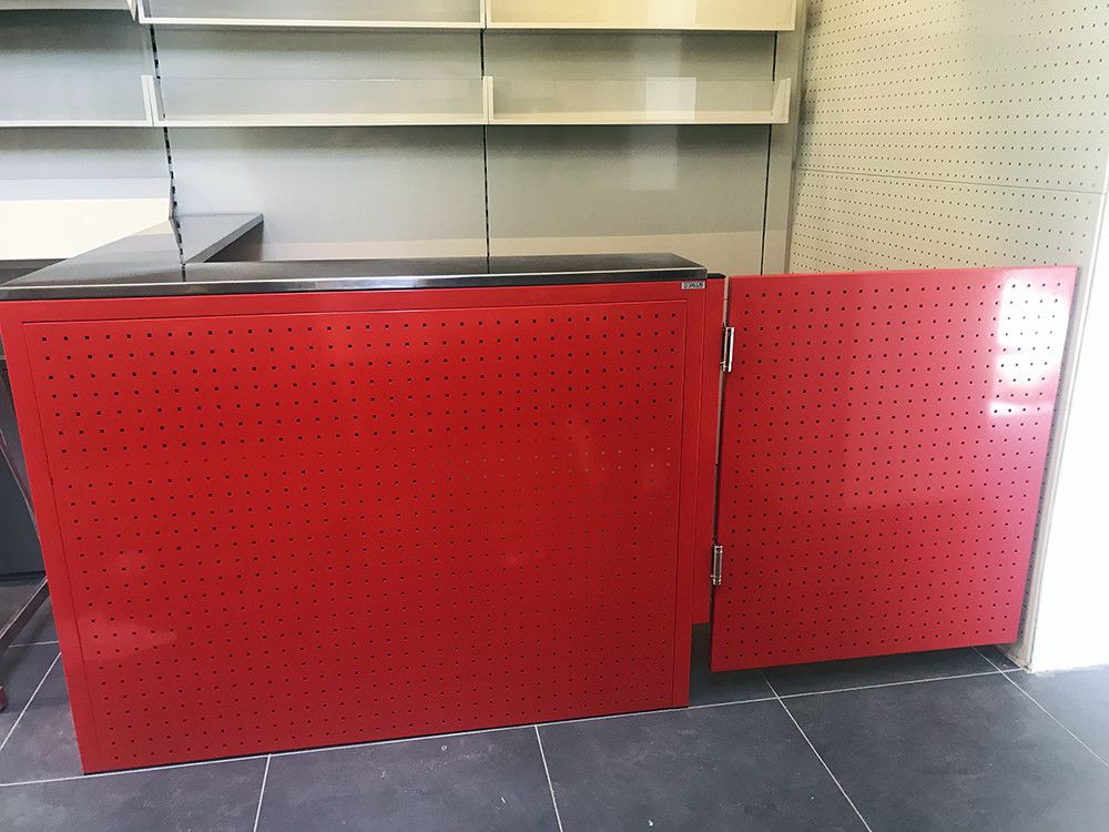 Possiamo inserire reception con scrivania e cassetto per la cassa, mobili espositivi con contenitori inferiori, ripiani fissi o inclinati, espositori con l’inserimento di plexiglass trasparenti per esporre oggetti.