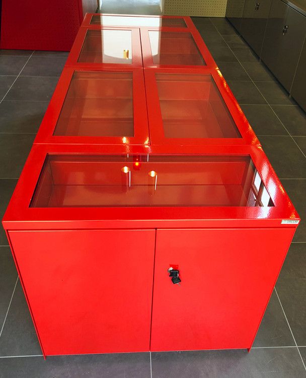 Vetrine espositive realizzate su misura per statue. Verniciatura a polveri epossidiche ignifughe certificate Classe 1 colori ral.