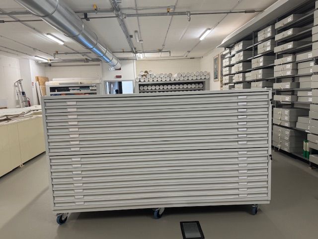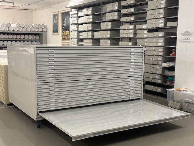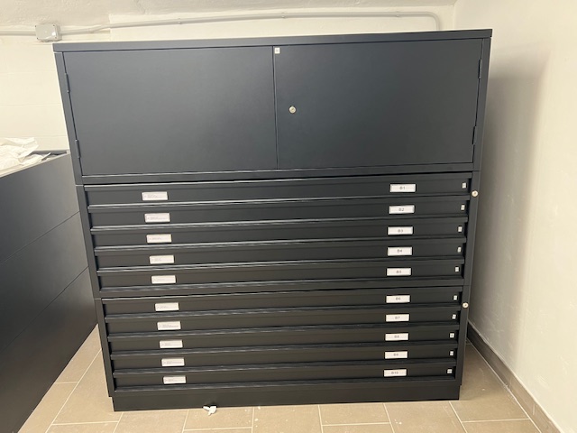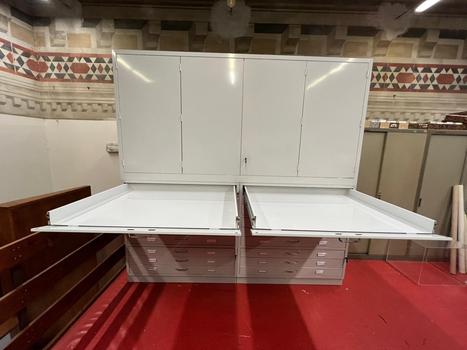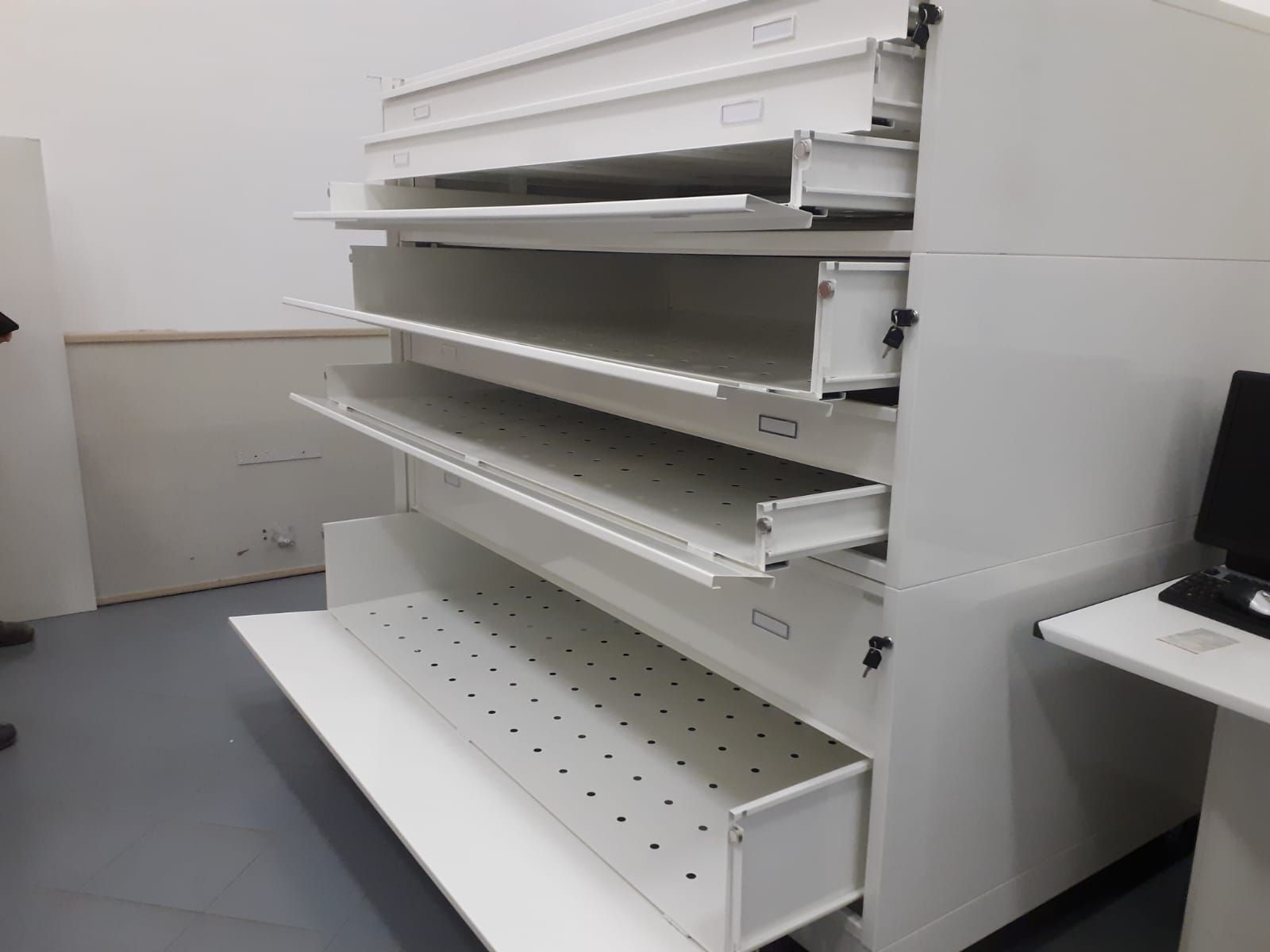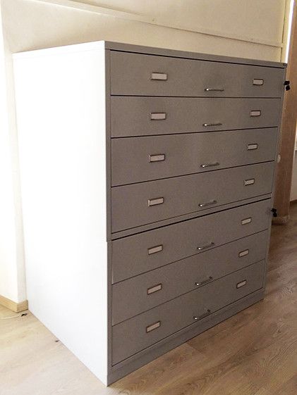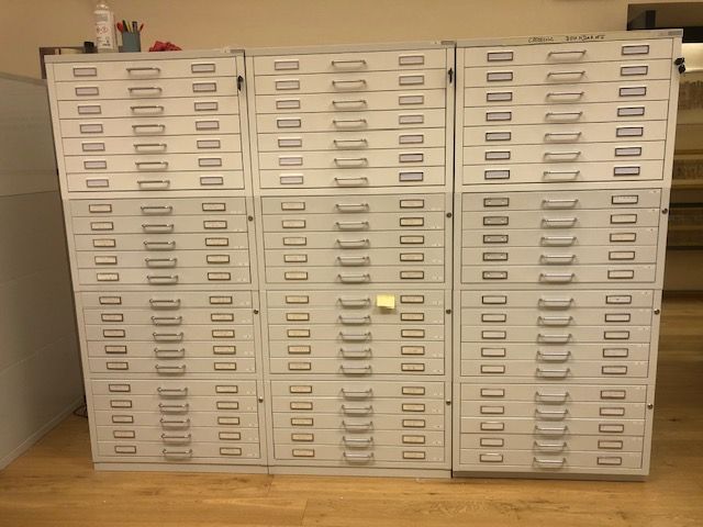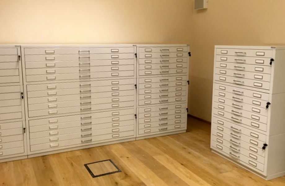 Le cassettiere contenitive nascono dall’archiviazione dei disegni e vengono poi utilizzate per archiviare: reperti archeologici, minerali, tele, quadri, stampe, cartelloni pubblicitari d’epoca, locandine cinematografiche, abiti storici, bandiere, carte geografiche ecc.