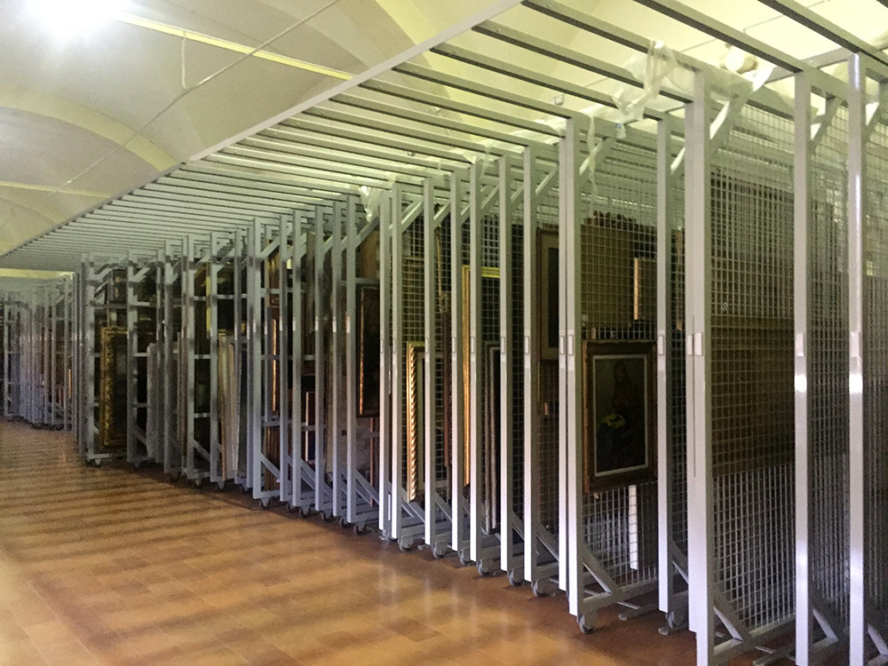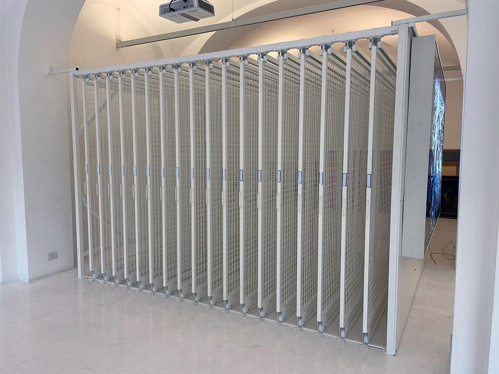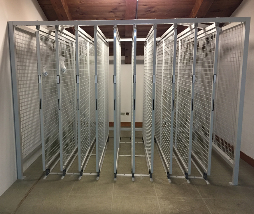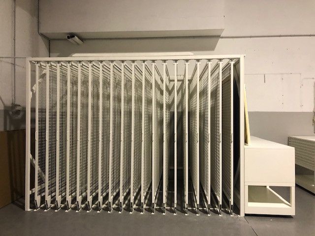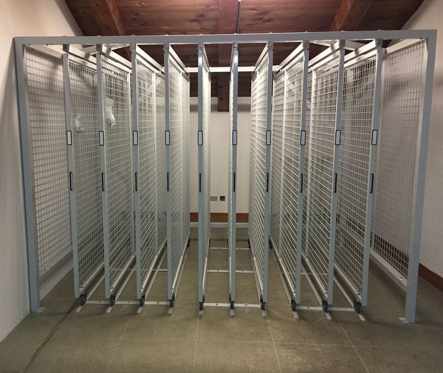 Le rastrelliere porta quadri sono un sistema di consultazione, custodia ed archiviazione quadri servono ad ottimizzare lo spazio e possono essere utilizzate anche nei locali espositivi dei Musei. Sono composte da pannelli a rete espositivi scorrevoli su ruote inferiori, sono indipendenti e lo spazio tra le medesime può variare a seconda del tipo di quadro, stampa o cornice ecc.