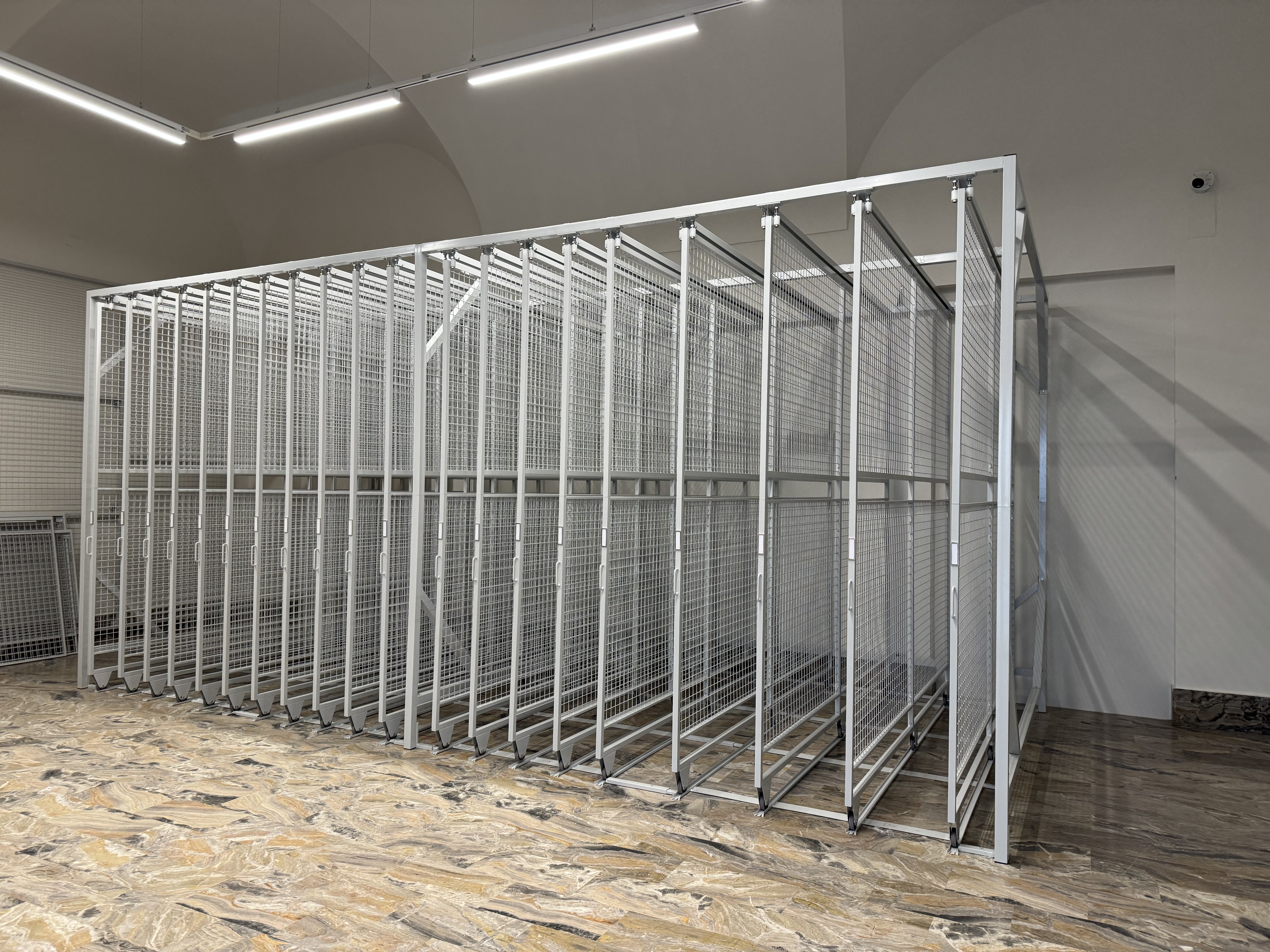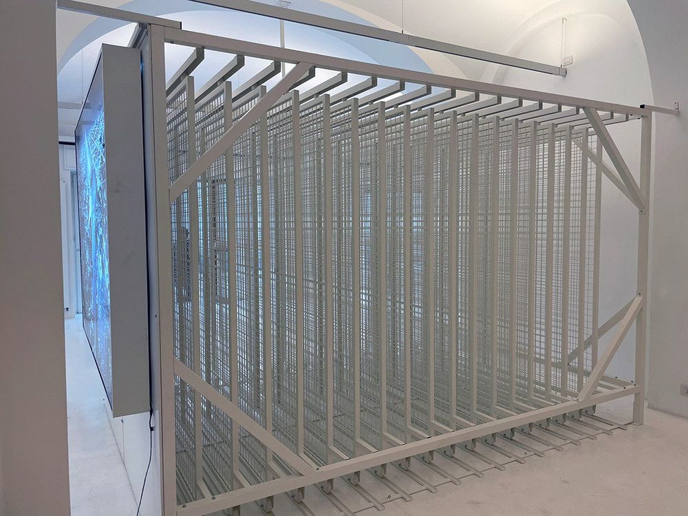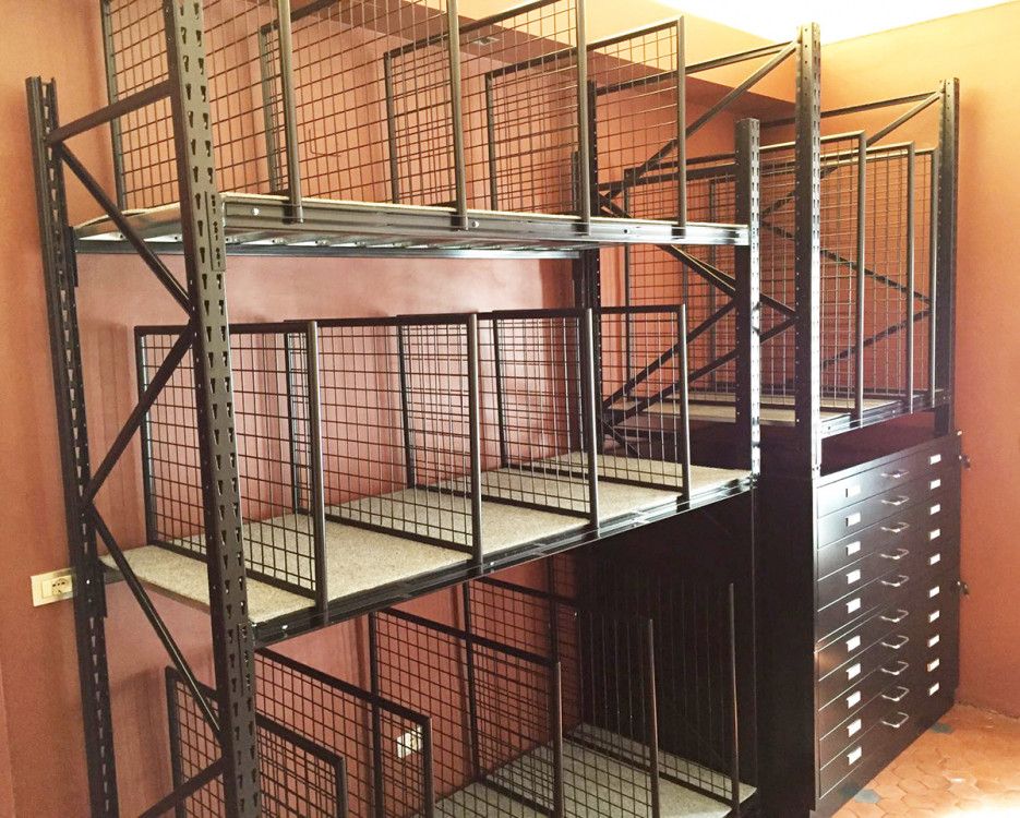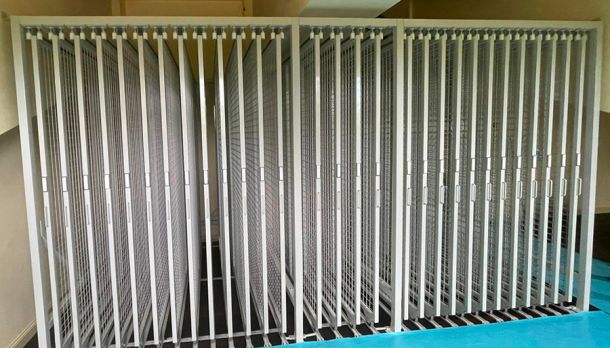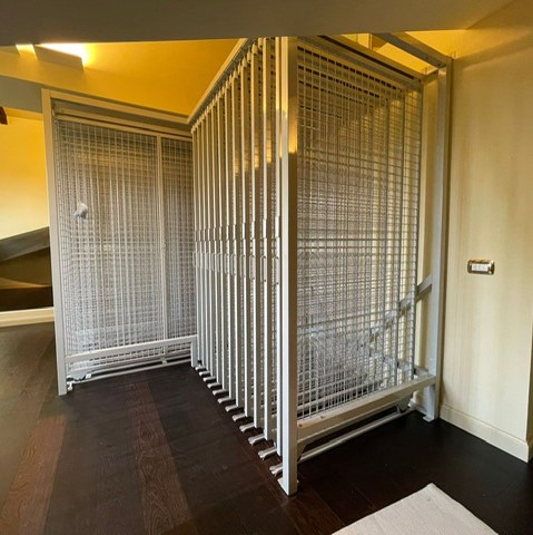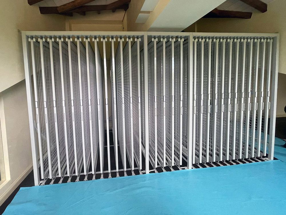 Le rastrelliere porta quadri sono un sistema di consultazione, custodia ed archiviazione quadri servono ad ottimizzare lo spazio e possono essere utilizzate anche nei locali espositivi dei Musei. Sono composte da pannelli a rete espositivi scorrevoli su ruote inferiori, sono indipendenti e lo spazio tra le medesime può variare a seconda del tipo di quadro, stampa o cornice ecc.