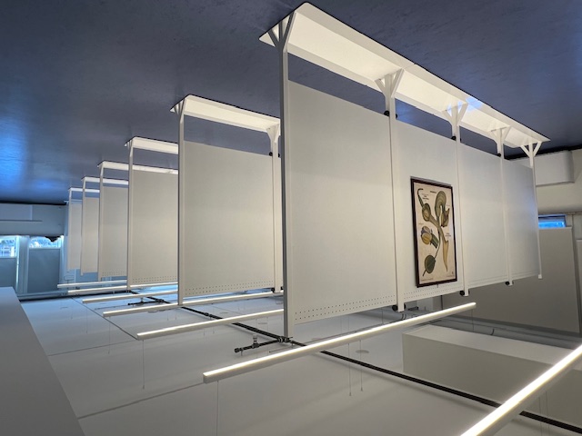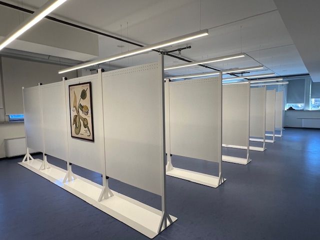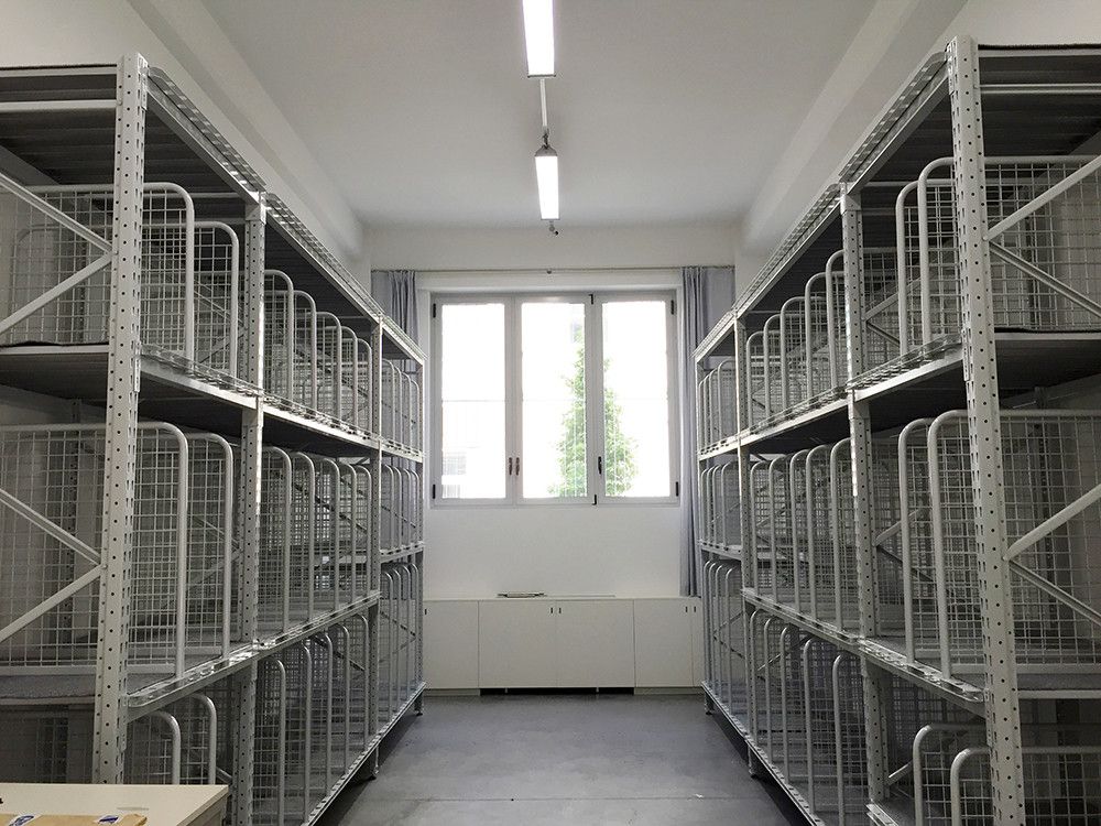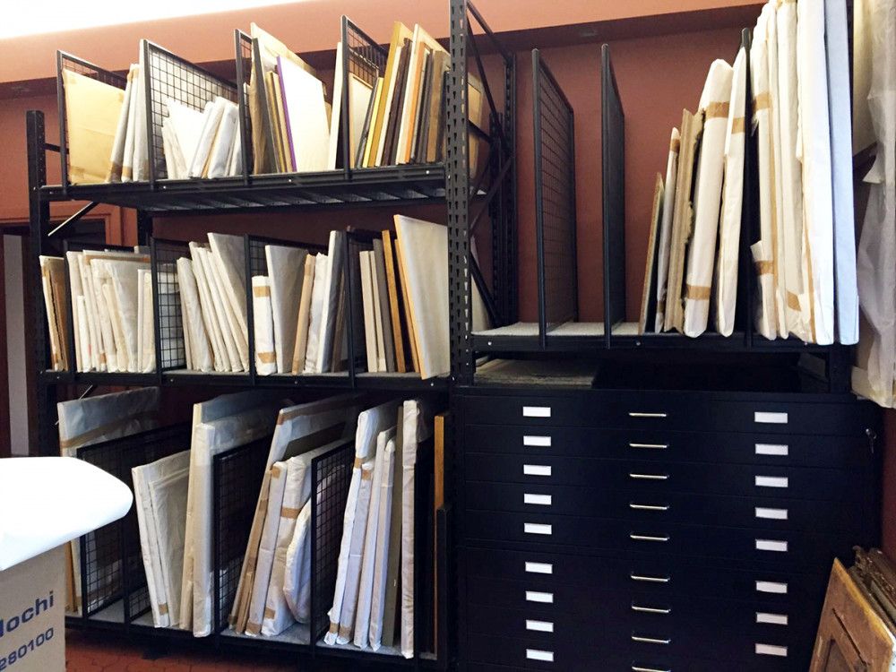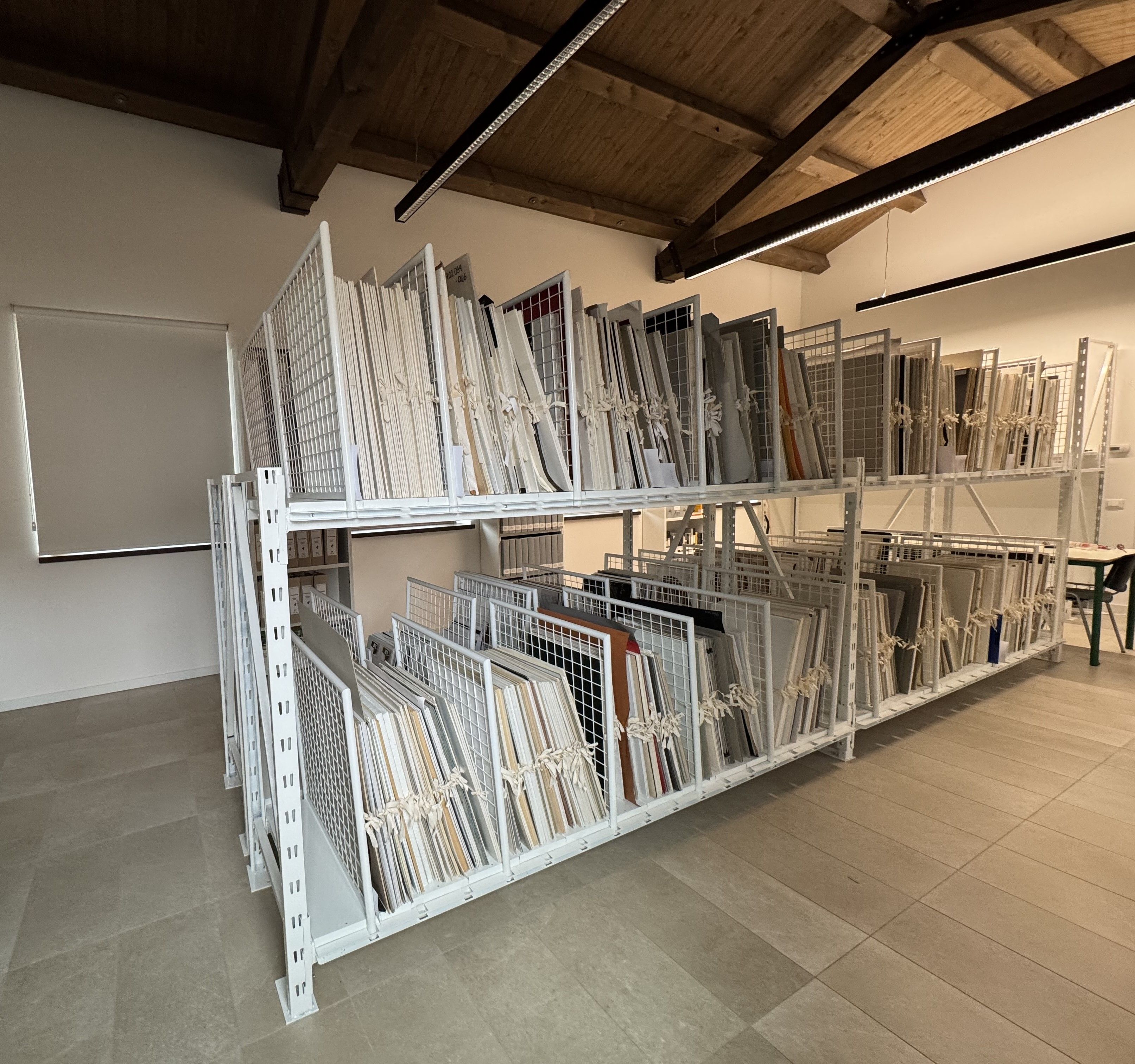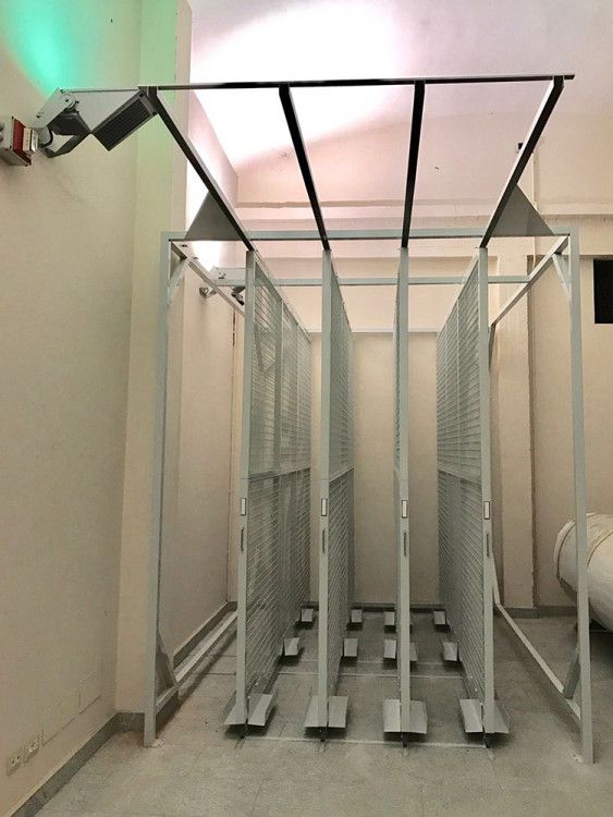 I ripiani possono variare in base all’altezza delle opere da archiviare, si aggiungono i separatori che possono essere di varie altezze da partire da cm. 30 h fino a cm. 150 h per distanze da decidere in base alle cornici o allo spessore delle tele.
