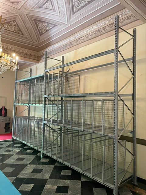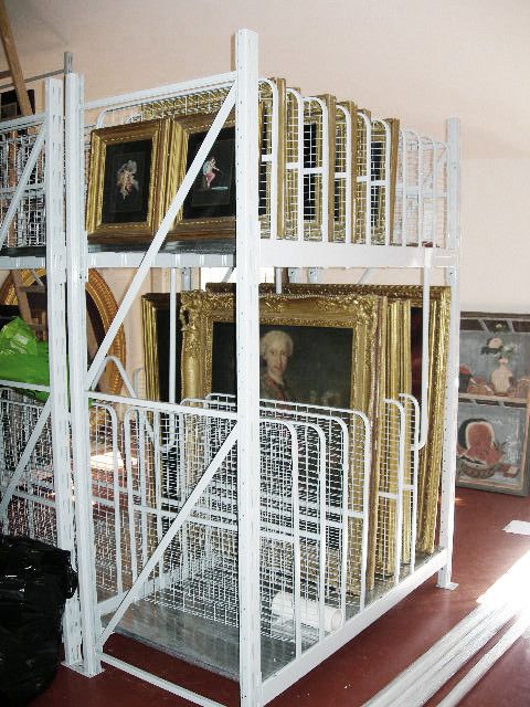 Le scaffalature porta quadri sono una nostra realizzazione per permettere l’archiviazione su più piani delle opere dei clienti, normalmente si archiviano i quadri imballati, possono avere altezza a partire da cm. 200 h fino a cm. 400 h, larghezze da cm. 150 fino a cm. 1500.