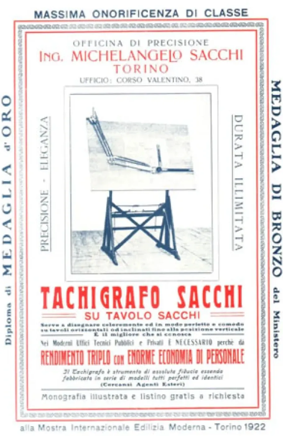 La ditta Ing. M. Sacchi Srl nasce nel 1922 com la produzione dei tecnigrafi e dei tavoli da disegno.